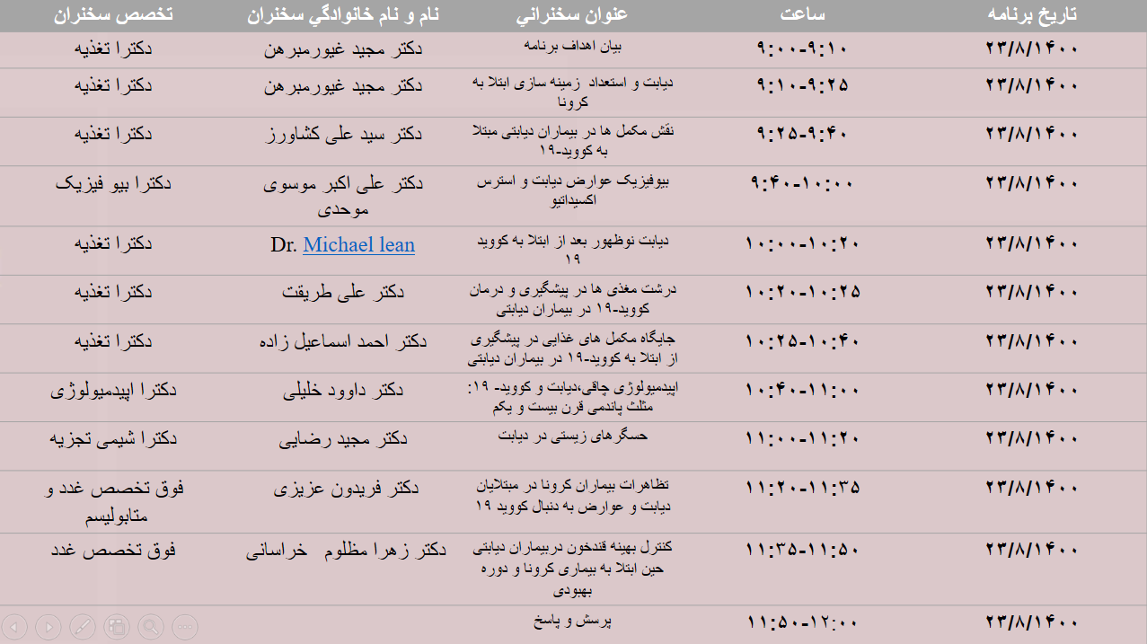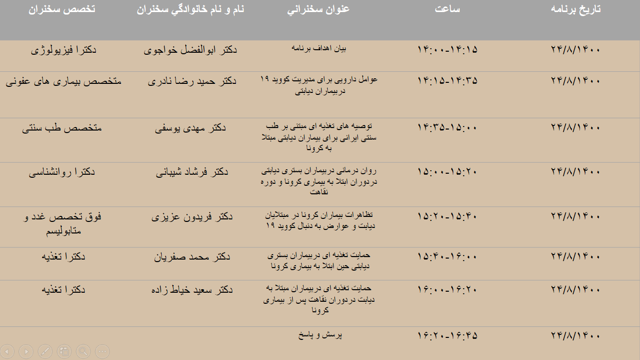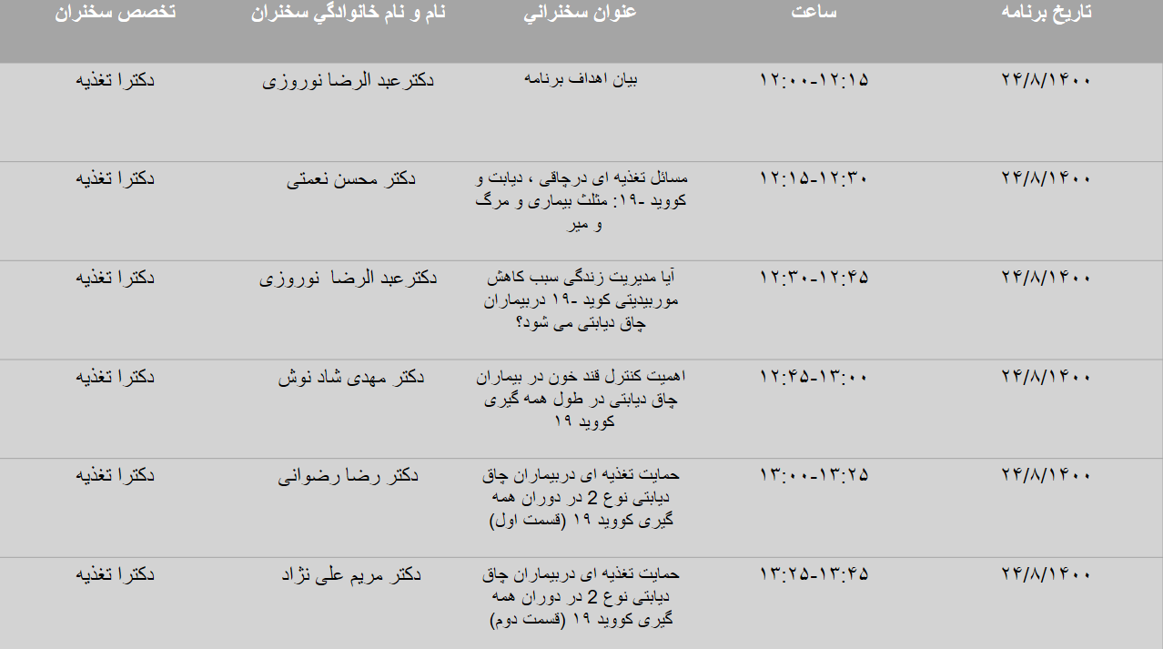 مدیریت تغذیه ای بیماران دیابتی در دوران همه گیری کووید-19 (دارای امتیاز بازآموزی با کد 170500)